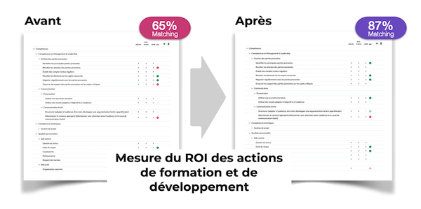 Mesurez précisément l’impact des actions de développement sur les compétences des personnes et des équipes. Toujours en ligne directe avec les objectifs stratégiques.